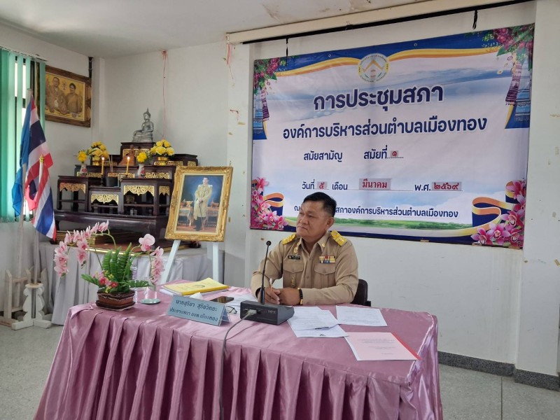 5 มีนาคม 2569 การประชุมสภา อบต.เมืองทอง สมัยสามัญ สมัยที่ 1 โดยนายสุริยา สุริยวิทยะ ประธานสภา อบต. นายธงชัย พุทธมอญ นายก อบต. ฯ