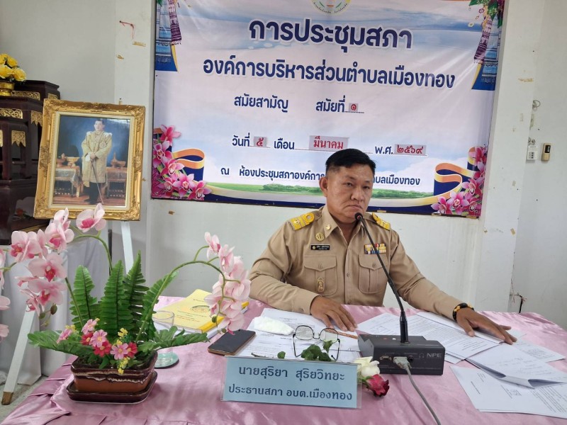 หัวข้อ :: 5 มีนาคม 2569 การประชุมสภา อบต.เมืองทอง สมัยสามัญ สมัยที่ 1 โดยนายสุริยา สุริยวิทยะ ประธานสภา อบต. นายธงชัย พุทธมอญ นายก อบต. ฯ